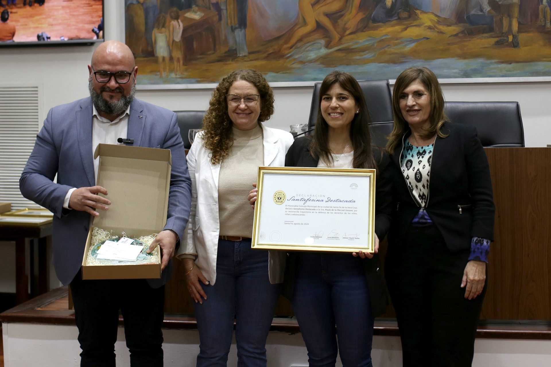 El acto se realizó en el marco del mes de la niñez y según lo establece el decreto Nº 1104 del año 2023, que en su artículo primero dispone “que se realice un homenaje a personas defensoras y luchadoras por los Derechos de los Niños, niñas y Adolescentes, otorgándoles la distinción de “Santafesino/as Destacadas”.
