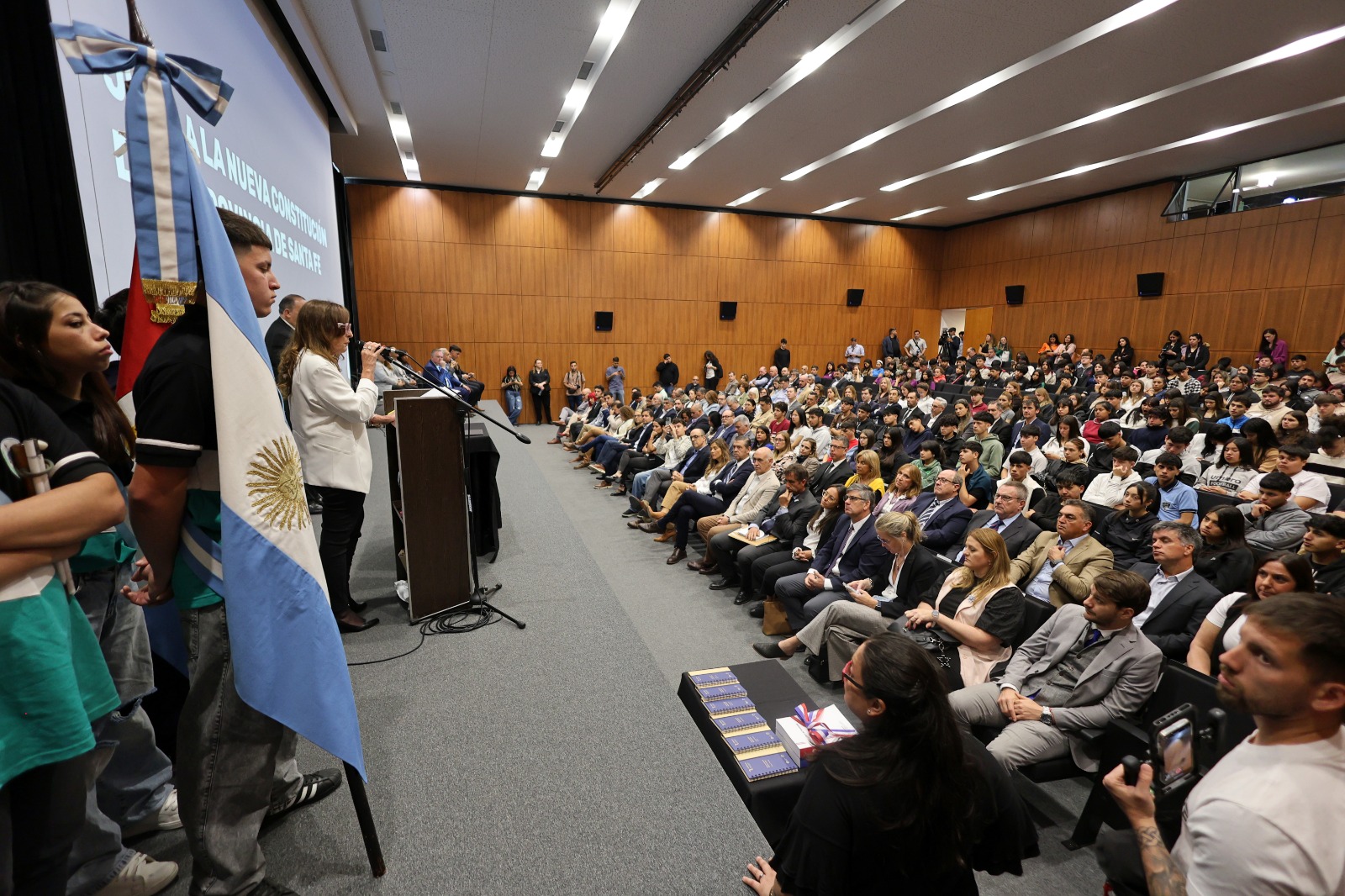 La secretaria de Educación, Alicia Barletta, sumó: “Recibimos 200 estudiantes aproximadamente de escuelas secundarias, elegimos ocho escuelas de la ciudad de Santa Fe y en esto destacó la decisión del intendente Poletti y de la presidenta del Concejo, ‘Chuchi’ Molina, de que este acto sea para la ciudadanía. Esta fue la decisión que tomaron en conjunto, la cual compartimos plenamente”.