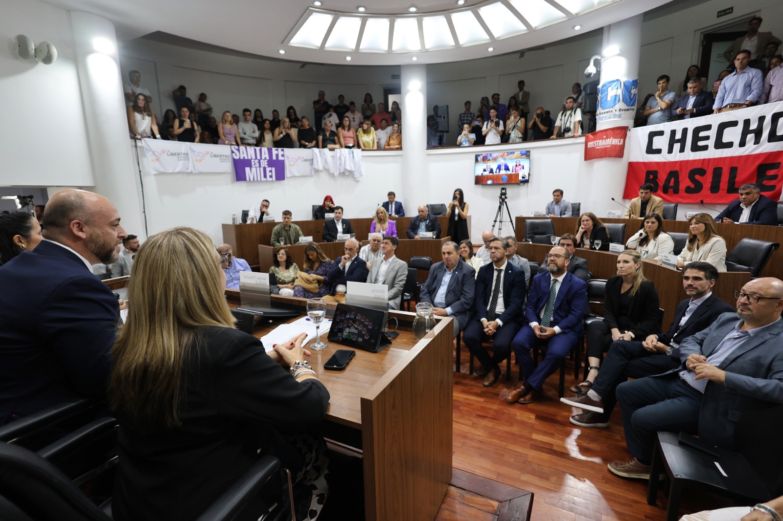 Antes, y con la concejala Cecilia Battistutti como presidenta provisoria, juraron los ocho ediles que se incorporan a la labor legislativa en este periodo: además de Basile, prestaron juramento María Luengo y Carolina Capovilla, los tres de UNIDOS; Ana Cantiani y Pablo Mussio, de La Libertad Avanza; Pedro Medei, de Más para Santa Fe; Jorgelina Mudallel, quien renovó su mandato por Partido Justicialista; y Gastón “Tati” Restagno, de Santa Fe en Común.